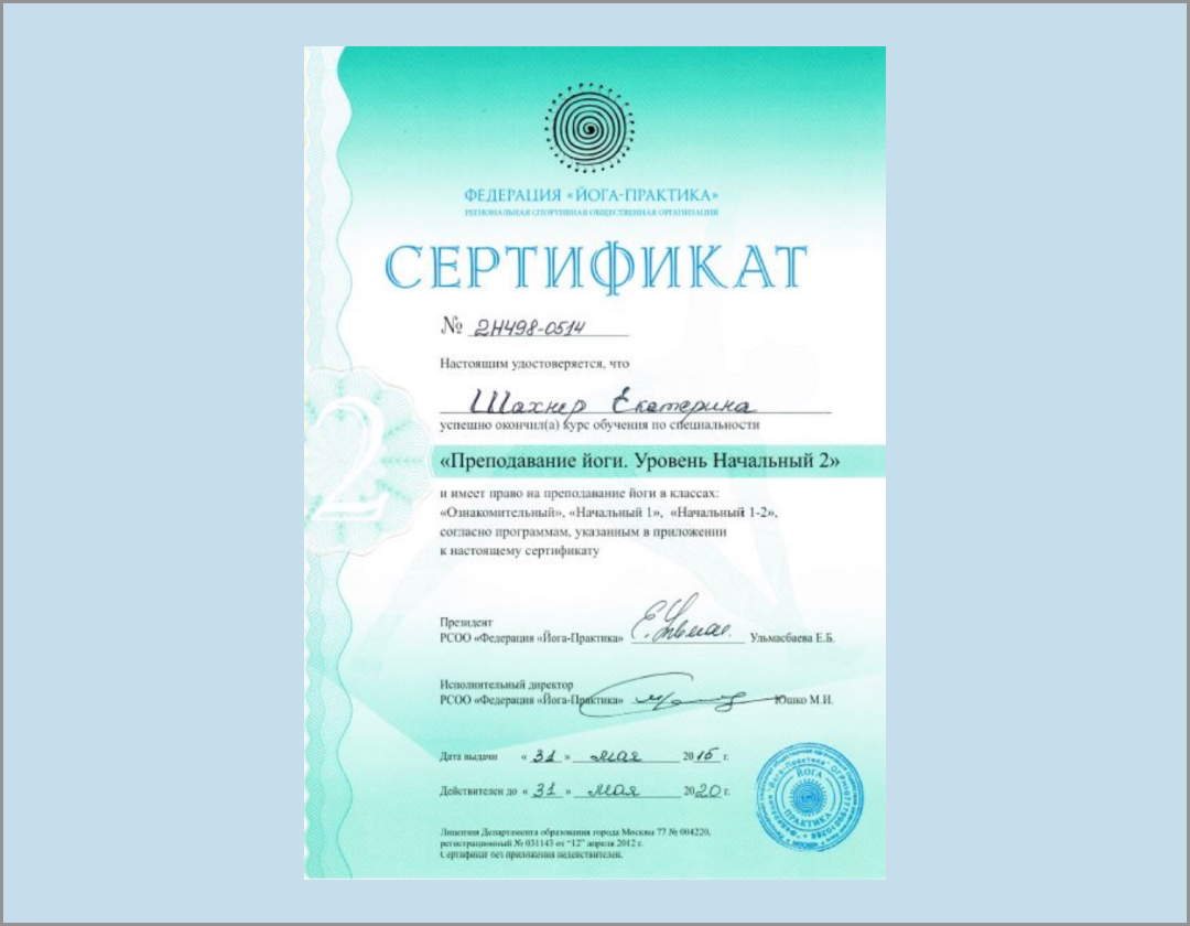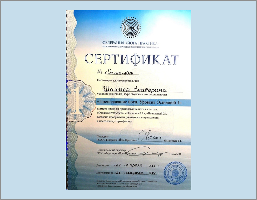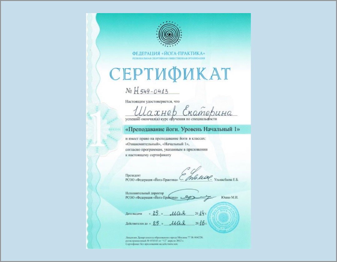 А спустя некоторое время, полностью погрузившись в физические практики, я поняла, что это мое призвание. Решающий аргумент положил на чашу весов индийский астролог, увидевший в моей тотальной карте представителя браминского рода, который вступив на путь йоги, путь Света — нашел свое предназначение. Он сказал «Ты учитель, — это твой путь, твоя карма». Пути назад не было. Параллельно с йогой я стала изучать различные современные методики работы с телом, имеющие научно-доказательную базу и к 2007 году я вышла в преподавание, испытав на себе силу преображения от использования полученных знаний и опыта.